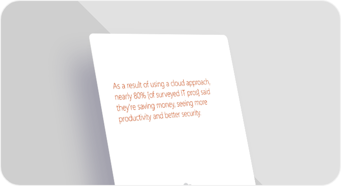 As a result of using a cloud approach, nearly 80% [of surveyed IT pros] said they’re saving money, seeing more productivity and better security. 6