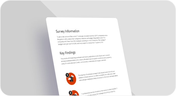 Survey Information To get a clear picture of the current IT landscape, we asked more than 250 IT professionals across the globe to tell us about their companies, industries and budgets. Respondents come from companies with fewer than 250 employees operating in a mix of industries. Their average IT budgets were just over $100,000, and many expect to increase their IT spend in 2016. Key Findings The process of virtualising workloads and moving applications to the cloud is well-accepted among businesses looking for a smart, affordable way to support a workforce using a growing array of mobile devices to work, communicate, collaborate and engage customers. 1 The majority of businesses surveyed have adopted some form of cloud solution or hosted service in an effort to simplify their daily tasks, lower costs and give employees always-on access to information and applications. 2 IT professionals are also virtualising their servers in order to handle IT- related workloads ranging from storage and printing to security. 3 Growing businesses are increasingly using and supporting smartphones, tablets, laptops and other mobile devices within their organisations. These devices are often BYOD and run on a range of operating systems. The Small Business Cloud Outlook - Introduction 3
